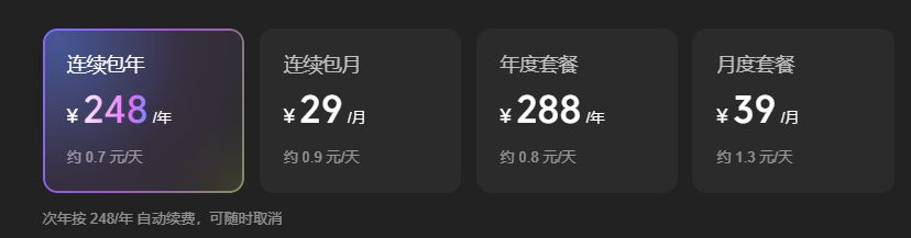 花生AI采用订阅会员制。根据蓝鲸财经报道,其会员定价为:
