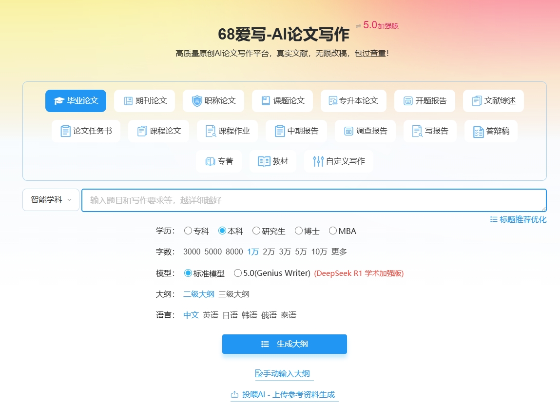 聚焦长篇深度学术写作,68 爱写 AI 以 “多学科融合 + 个性化定制” 为特色,打造三大核心能力,尤其适配跨领域研究场景。