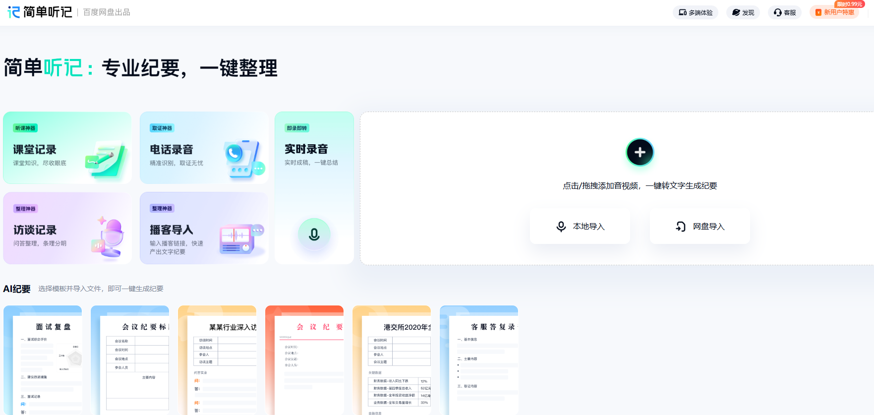 百度网盘的「简单听记」是一款内置于百度网盘的AI语音转文字工具 🎤,它非常适合需要处理会议记录、整理课程内容或有其他语音转文字需求的用户。