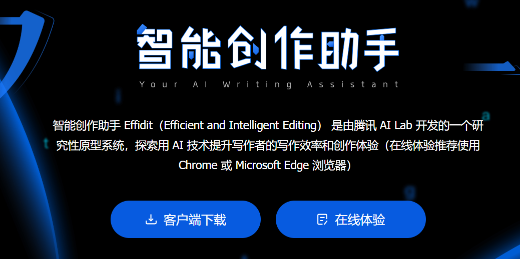 腾讯推出的这款智能创作助手Effidit(又名文涌),是一款由腾讯AI Lab开发的AI辅助写作工具,旨在提升写作效率和质量。它支持网页版、Windows客户端以及微信小程序,目前免费使用,也无需注册登录。
